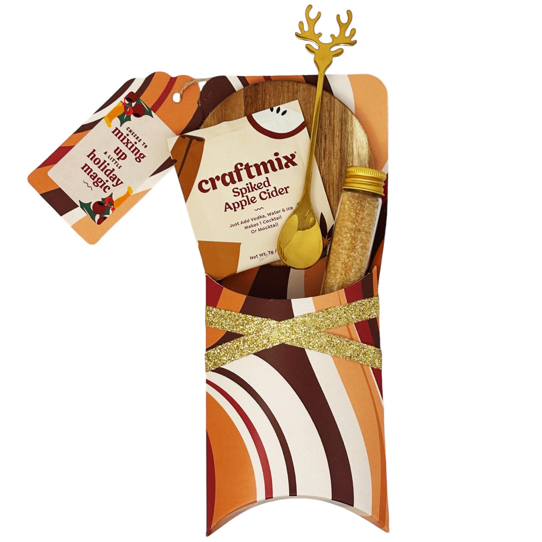 Includes: Craftmix Spiked Apple Cider Mix Holiday Elk Golden Mixing Spoon Rustic Wooden Coaster Tube...